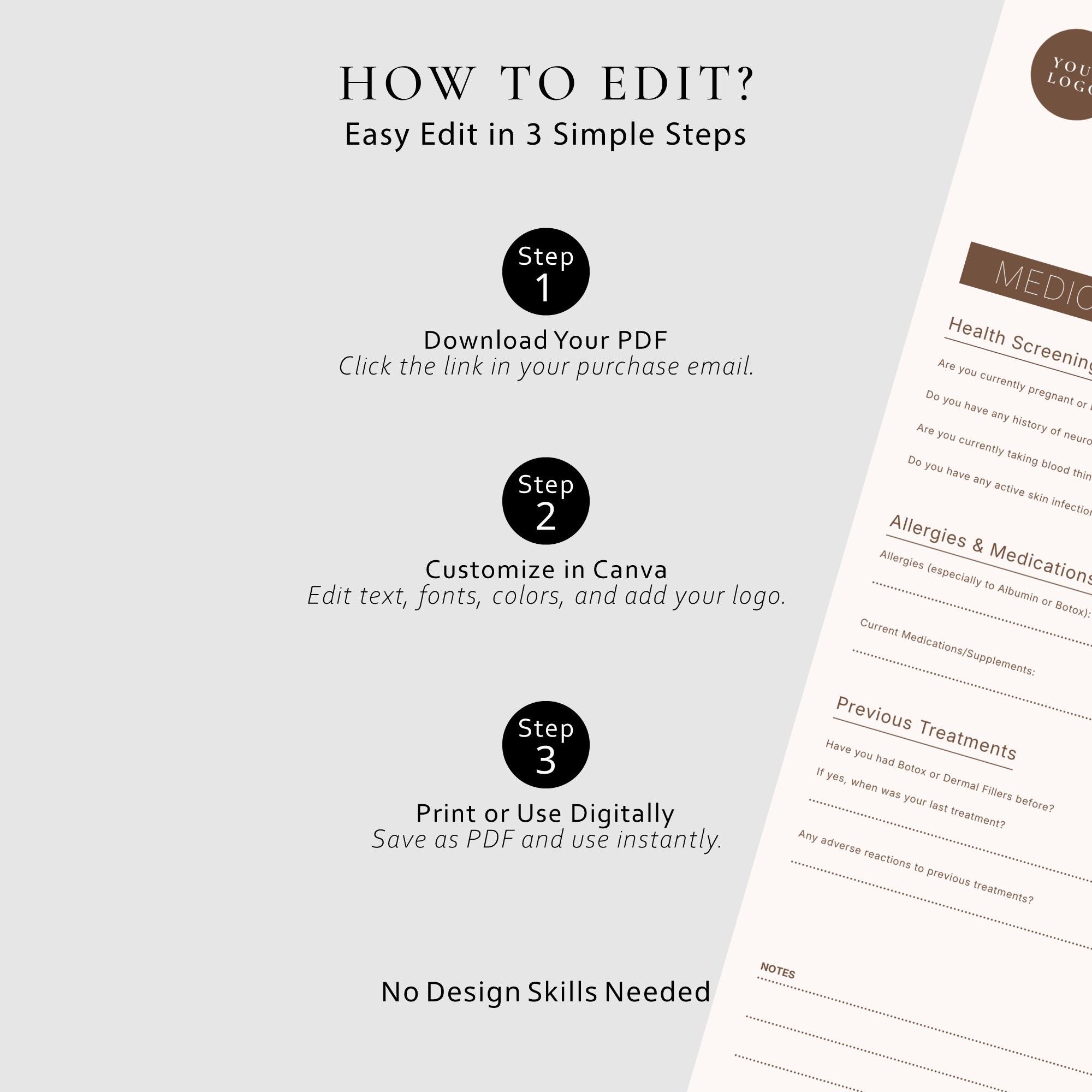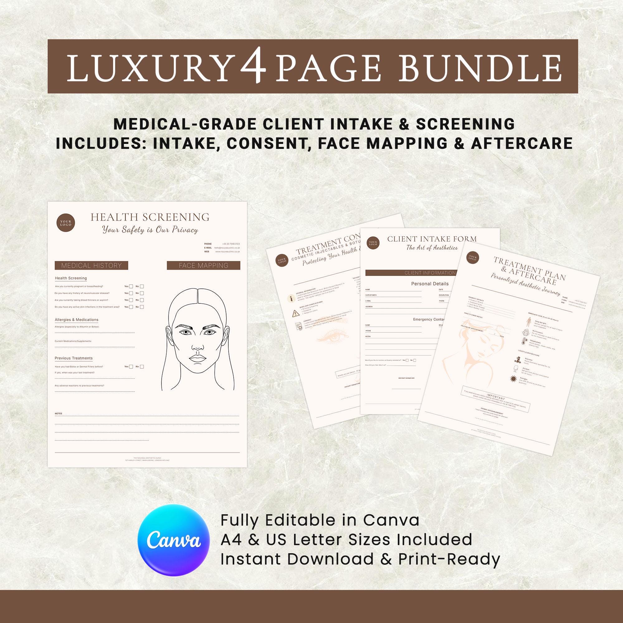 Editable Intake Bundle, Client Medical Records, Skin Clinic Documents, Canva Questionnaire, Digital Forms
