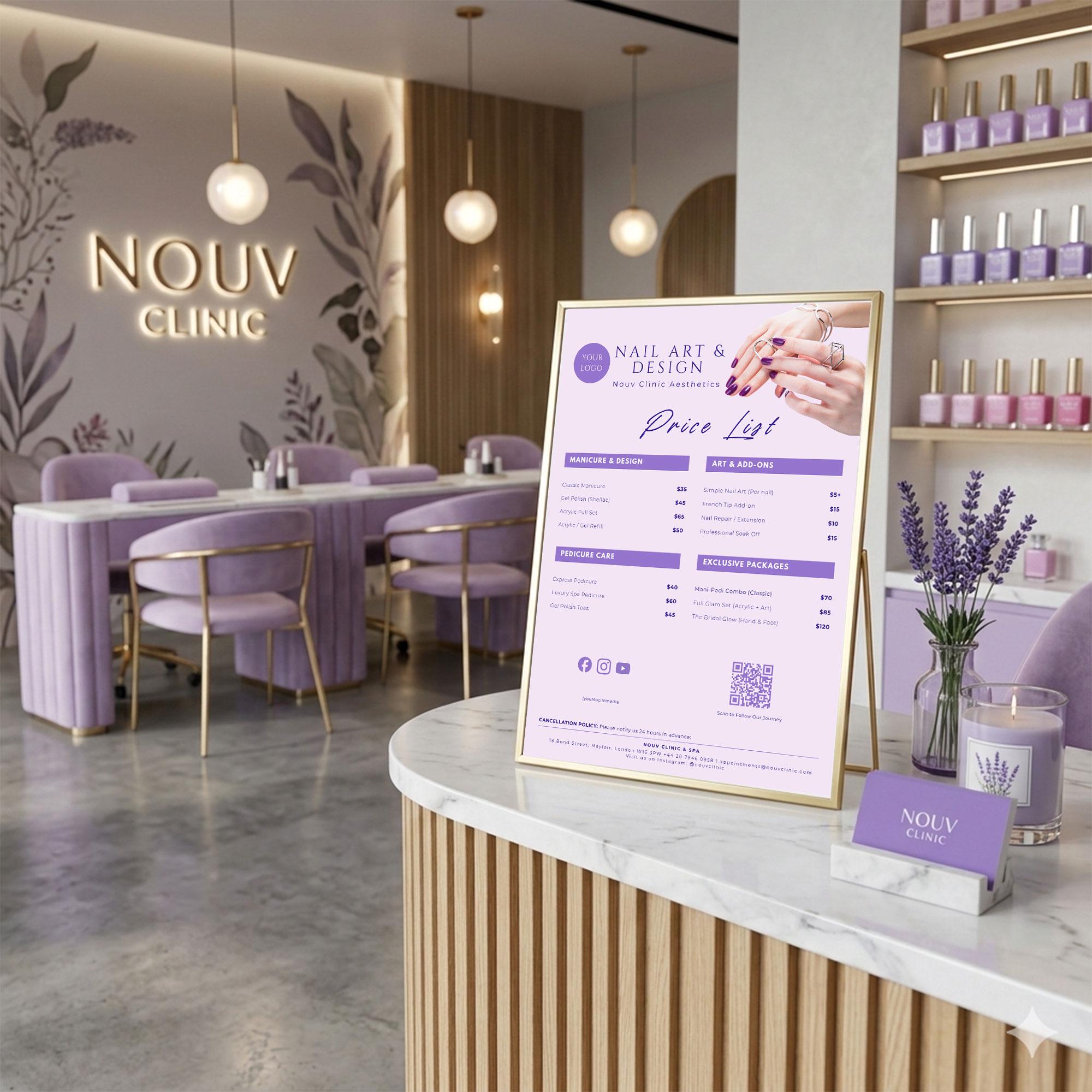 Lavender Nail Salon Price List – Modern Minimalist Service Menu (A4)