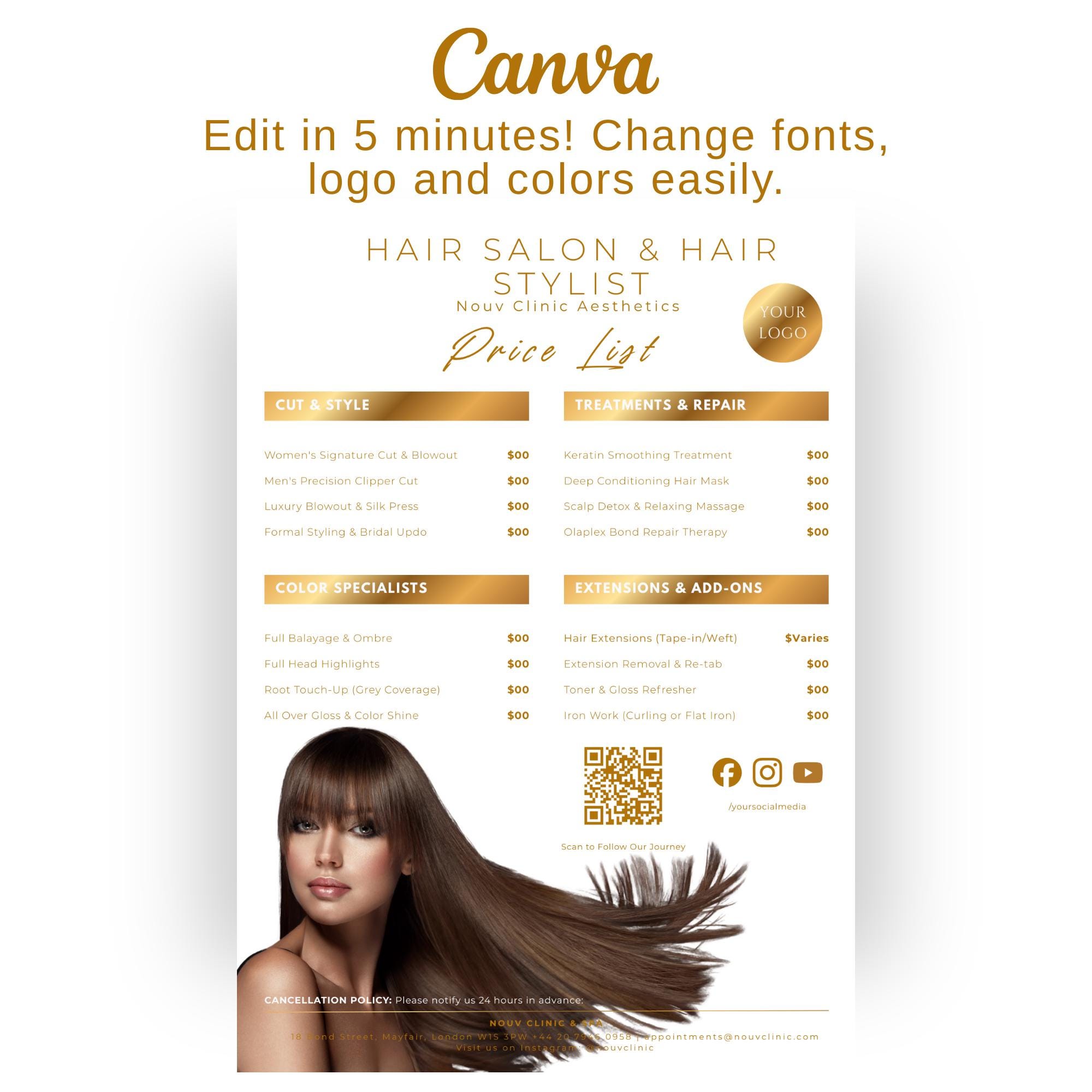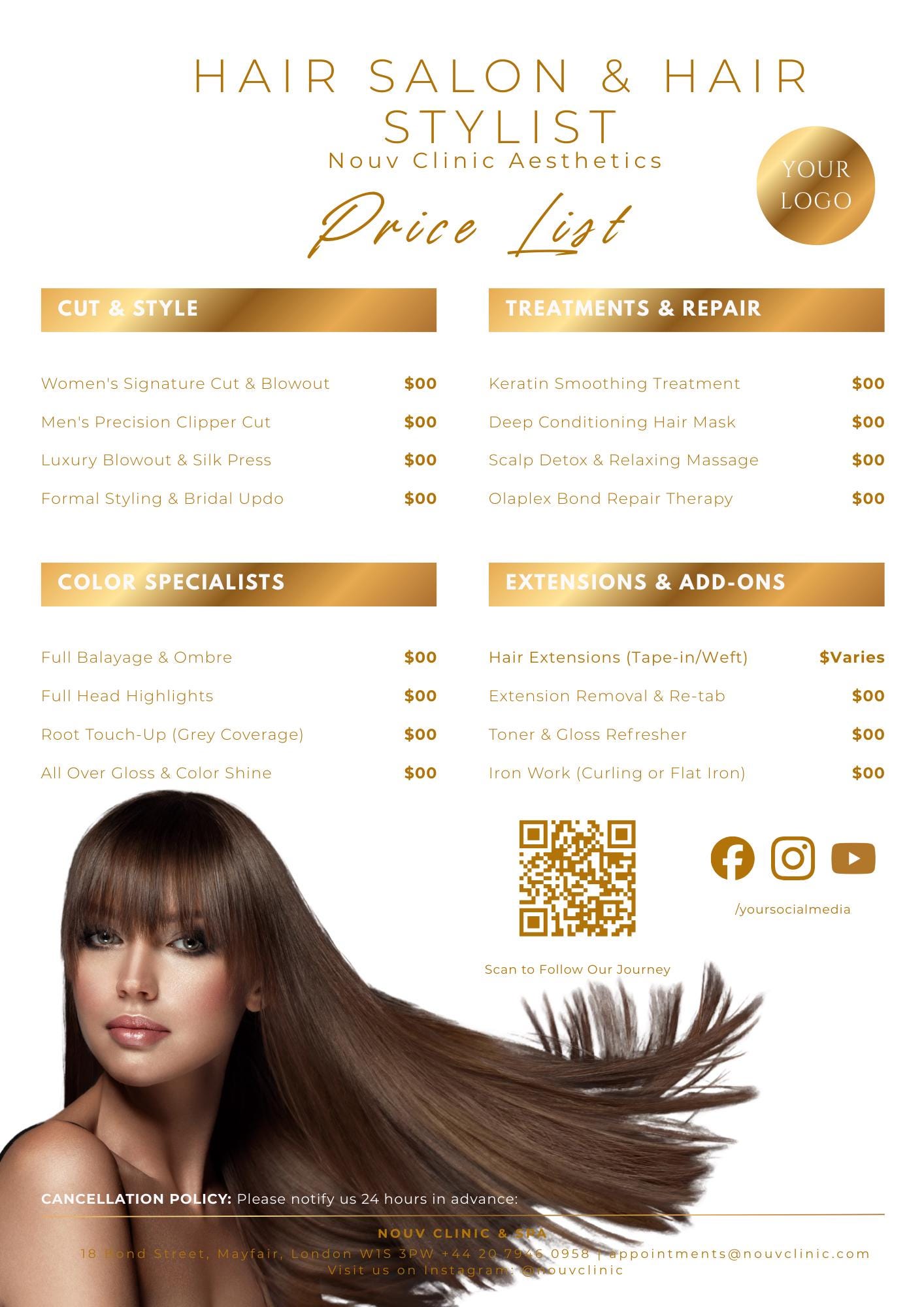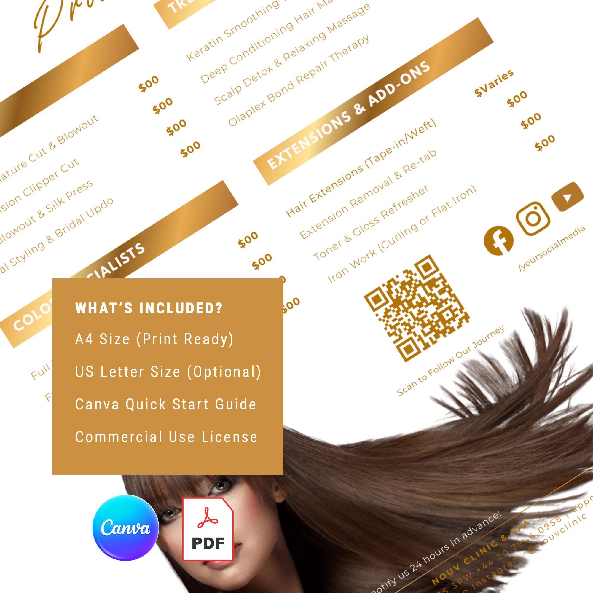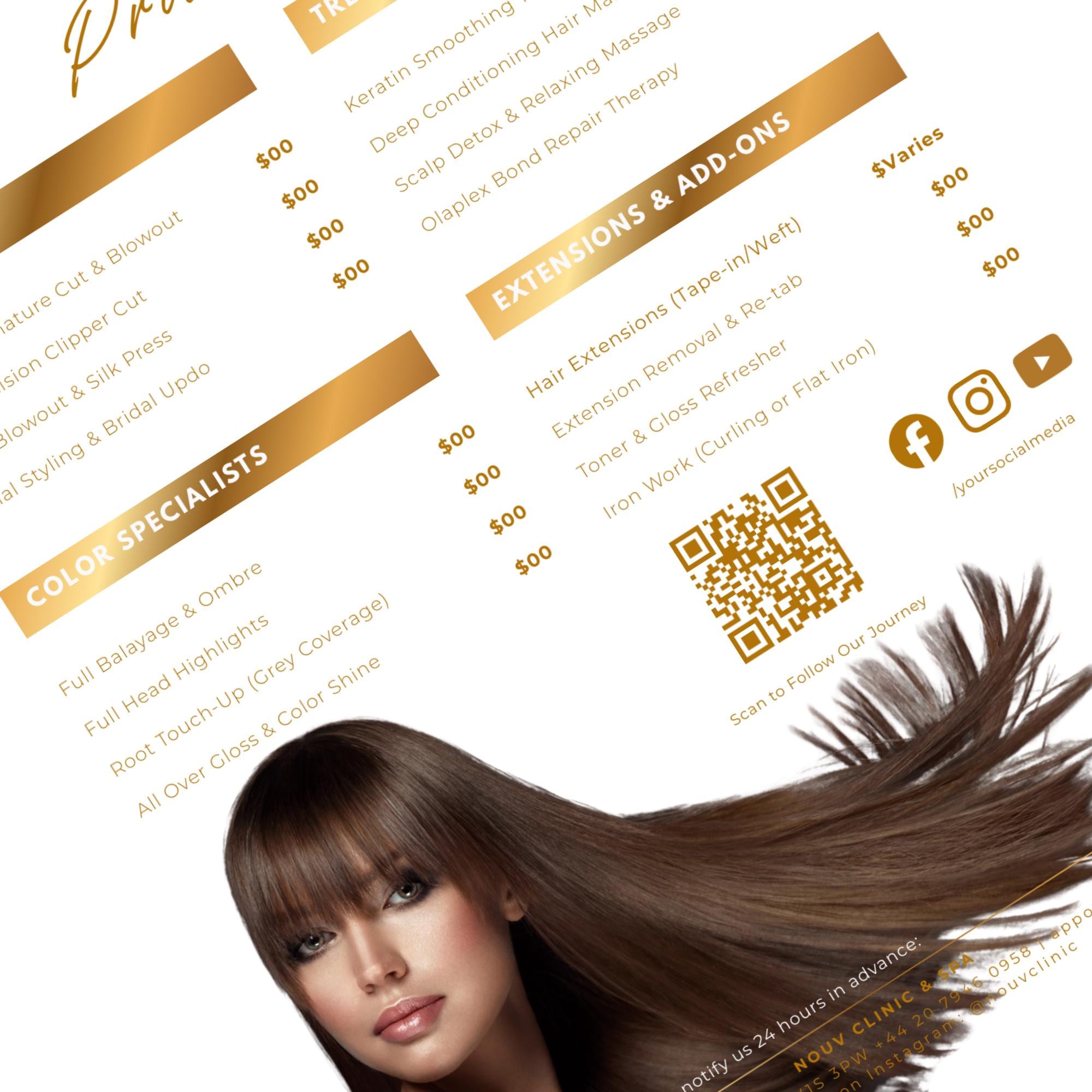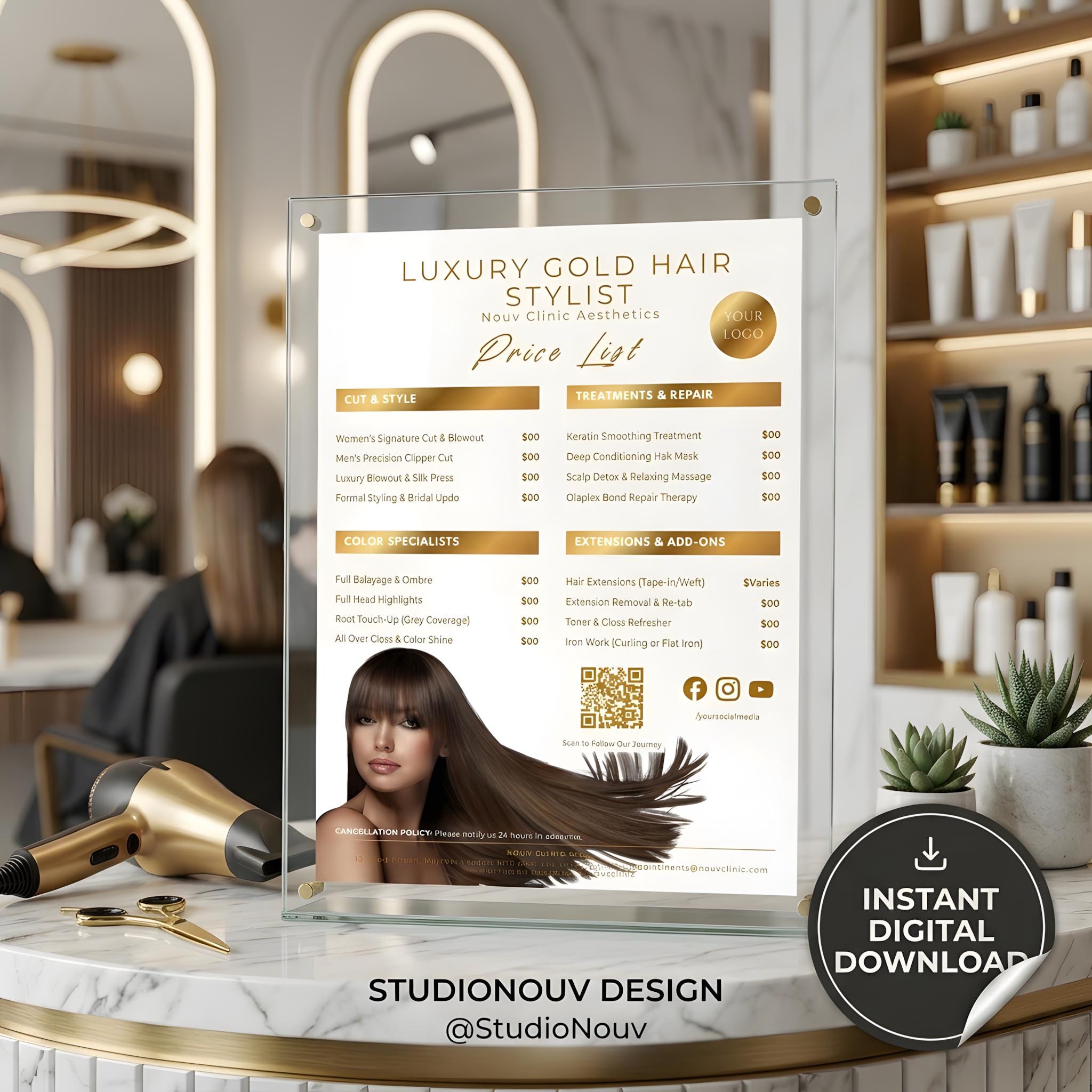 Luxury Gold Hair Stylist Price List, Elegant Beauty Menu (Digital Download)